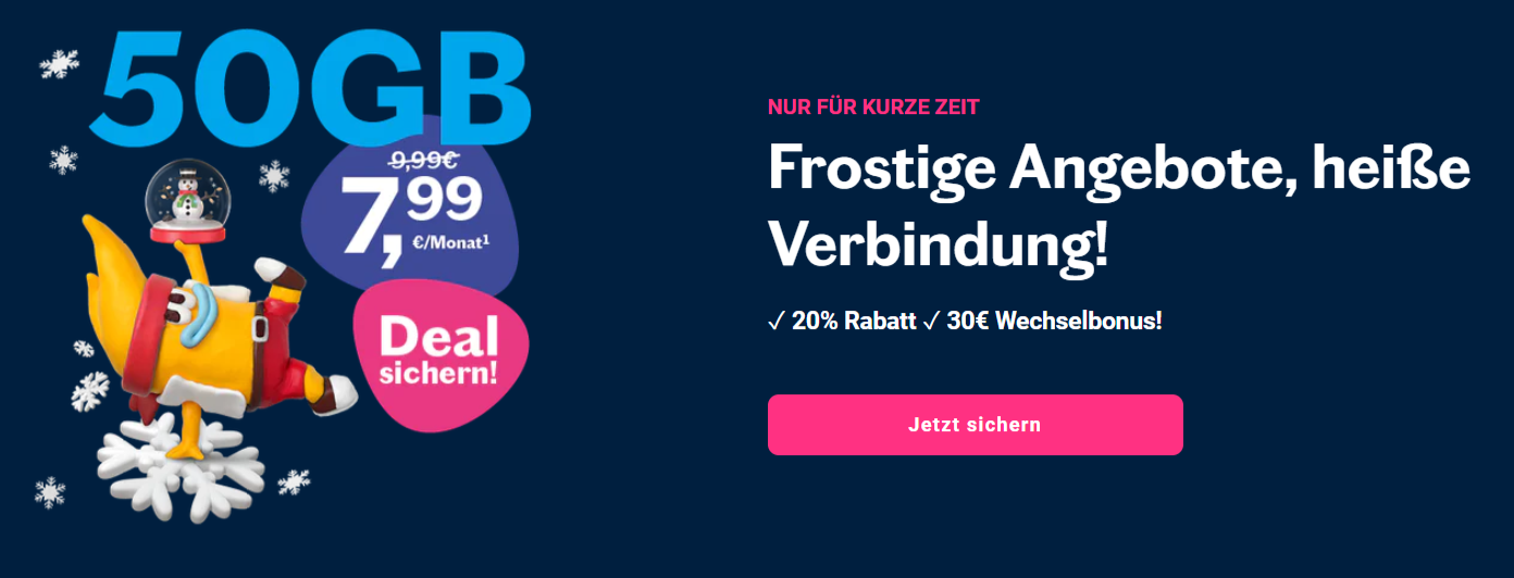 Coole Winterdeals! 50 GB für nur 7,99 € im Monat bei Lebara!