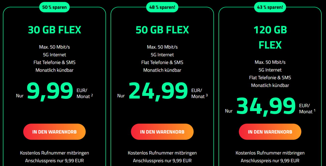 - Internet-Flat: 30 GB 5G