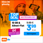 Mit SIMon mobile ist ein preiswerter Mobilfunkanbieter im Vodafone-Netz verfügbar. Das Angebot ist monatlich kündbar, hat keine Anschlussgebühr und bietet dafür aktuell bis zu 150 GB. Besonders lohnenswert: unser streng limitierter und ganz exklusiver Bonusdeal zum Handyhase-Geburtstag mit 10-Euro-Gutschein, der Dir beispielsweise einen Monat gratis 50 GB schenkt! [weiterlesen]