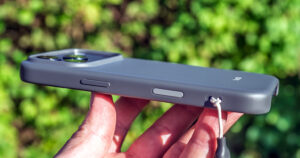 Ein positiver Nebeneffekt eines Hülleneinsatzes: Damit lässt sich bei Bedarf die wohl umstrittenste Designentscheidung für das iPhone 17 Pro ein Stück weit kaschieren. Der ehemals quadratische und kompakte Kamerabuckel erhebt sich jetzt als Rechteck entlang der ganzen Breite des iPhone-Rückens. Die Fläche darunter setzt sich durch die klar umrandete, oben erwähnte Keramikschicht vom Rest der Rückseite ab. Das elegante, minimalistische Apple-Design früherer Tage ist damit dahin. Aber mit einer Hülle drumherum fällt das etwas weniger ins Auge.