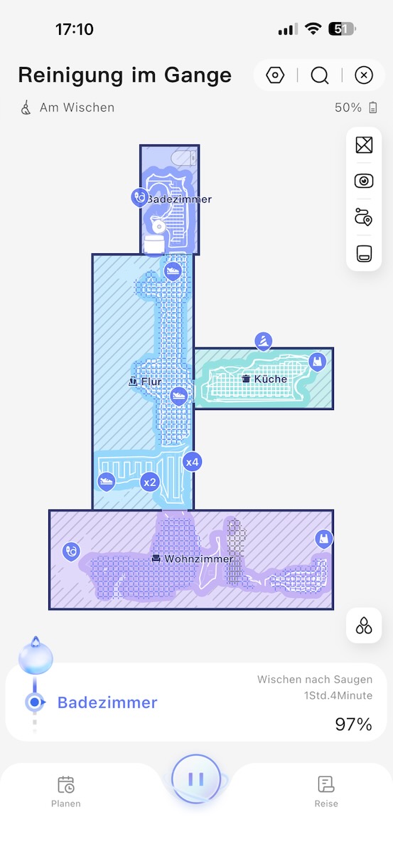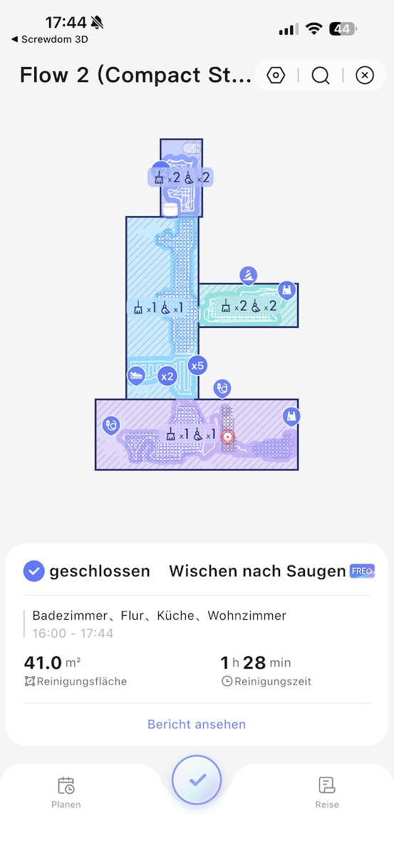 Nach drei großen Launches und insgesamt fünf Robotern am deutschen Markt (Freo-S-, Freo-X-, Freo-Z- und Flow-Serie) sollte man meinen, die App hätte sich sprachlich deutlich verbessert. Aber z. B. ist auch bei den Flow-Modellen mit ihrer Wischwalze überall die Rede von Mopp-Pads, die überhaupt nicht zum Einsatz kommen. Hier wurde von den anderen Modellen einfach nur Copy & Paste gemacht. Dadurch wirkt leider das Gesamtprodukt ein bisschen billig, was der Leistung des Flow 2 überhaupt nicht gerecht wird. Und seinem Preis.