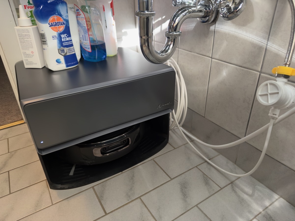 Wenn Du die Möglichkeit hast, die Basis irgendwo direkt anzuschließen, dann mach das, Du willst das. Die nimmt ja auch deutlich weniger Platz weg, als ihr normales Gegenstück und ist durch ihre flache Decke auch noch verwendbar. Ob es Narwal nun gefällt oder nicht, da stehen jetzt unsere Reinigungsmittel drauf.