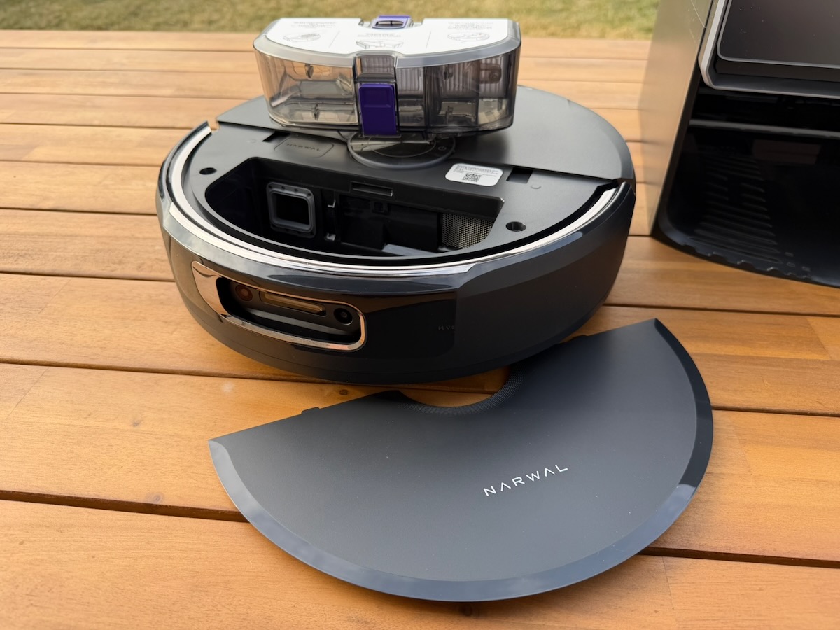 Diesmal können beide Stationen Narwals Reinigungsmittel automatisch dem Wischwasser zugeben. Beim Vorgänger der normalen Basis war zwar ein Fach in der Station vorhanden, aber es war weder angeschlossen, noch gab es passende Kartuschen. Das war ein größerer Negativpunkt, nach dem Narwal Freo Z10 Ultra, der gleich zwei Reinigungsmittel verwenden kann.