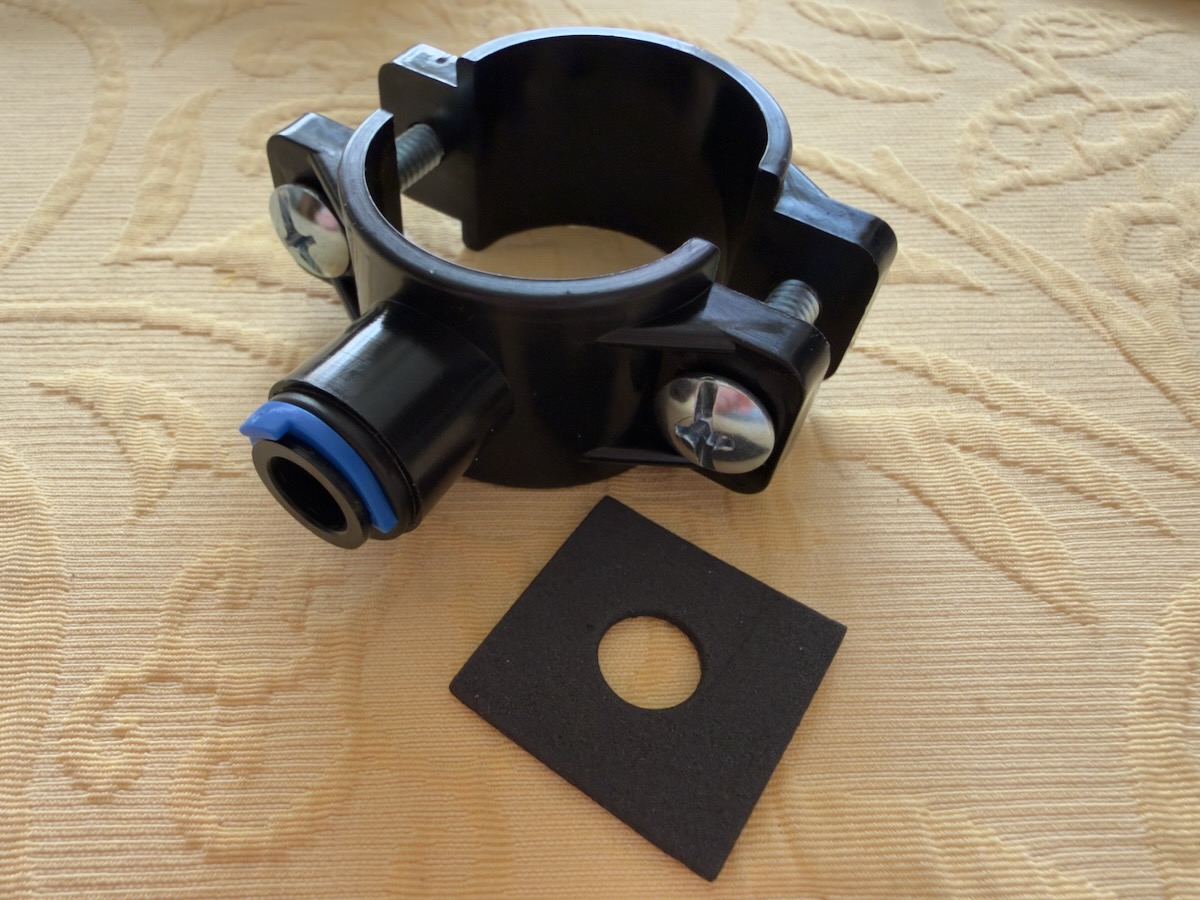 Lösung: Montage einer Schelle am Tauchrohr der Badewanne. Auch wieder dank der Osmosefilter existiert eine Schelle, die man einfach an jedes Kunststoffrohr montieren kann, das einen bestimmten Durchmesser nicht überschreitet, und zwar genau dort, wo und in welche Richtung man es braucht. Dazu muss man ein Loch in das Fallrohr bohren, die Schelle befestigen und ggf. unterfüttern, wenn das Rohr, wie bei uns im Test, einen etwas zu kleinen Durchmesser hat. An den Push-Anschluss passt nun einfach das Abwasserrohr von Narwal und die Installation ist komplett!