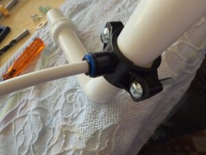 Lösung: Ein passendes T-Stück für einen der Abgänge besorgen, dessen Abzweig ½ Zoll hat. Schon kann man daran den Narwal-Panzerschlauch, die Kontrollbox mit Filterschwamm und den Push-Fit- (oder Quick-Fit-) Schlauch zwischen Kontrollbox und Narwal-Basis zusammenbauen. Hier ist wirklich keine große Kraftanstrengung notwendig. Tatsächlich solltest Du hier vorsichtig verschrauben, damit Du nichts überdrehst. Du benötigst lediglich für das T-Stück zwei passende Maulschlüssel.