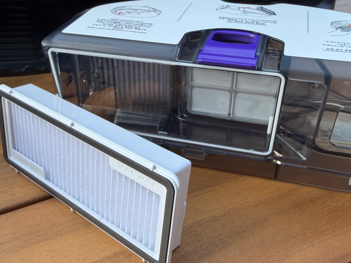 Genauso lang hält auch der Staubbeutel in der Basis, in dem der feste Staub sein Ende findet. Das sind weiterhin ca. 120 Tage ohne Eingreifen. Mehr Staub macht den Beutel natürlich schneller voll. Der Beutel wird wie auch in den Stationen anderer Narwal-Roboter mit warmer Luft getrocknet. Das sind jetzt 60 anstatt 45 °C.