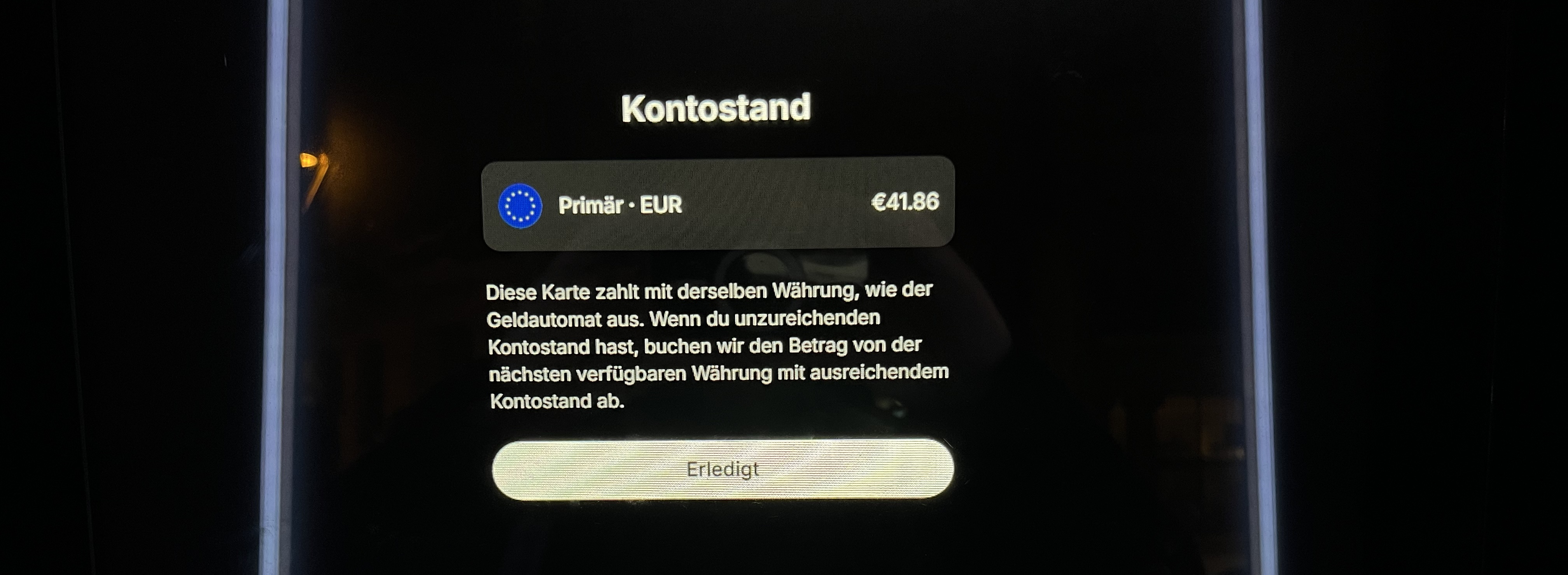 Kontostandsanzeige auf dem Display.