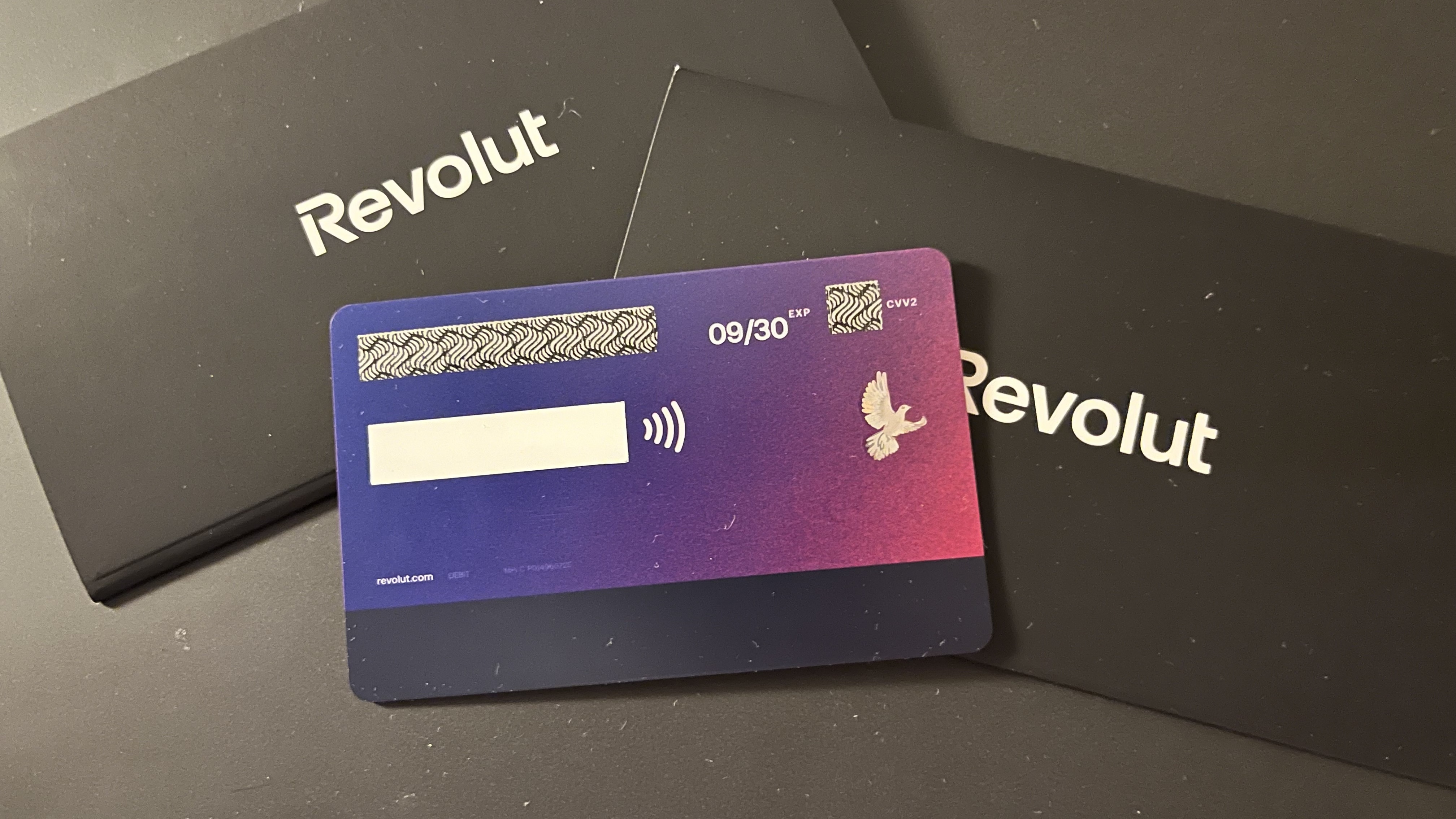 Die Revolut-Karte aus dem Bankautomaten hat zwei Rubbelfelder. Die beiden schwarzen Umschläge stammen aus den reinen Kartenausgabe-Automaten am Flughafen. (Foto: Andreas Sebayang / Handyhase)
