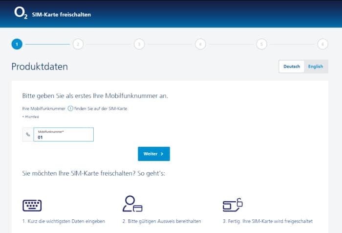 - Nach der Anmeldung musst Du die SIM-Pin eingeben. Diese findet sich in den Unterlagen, die Dir zur SIM-Karte mitgeschickt wurden.