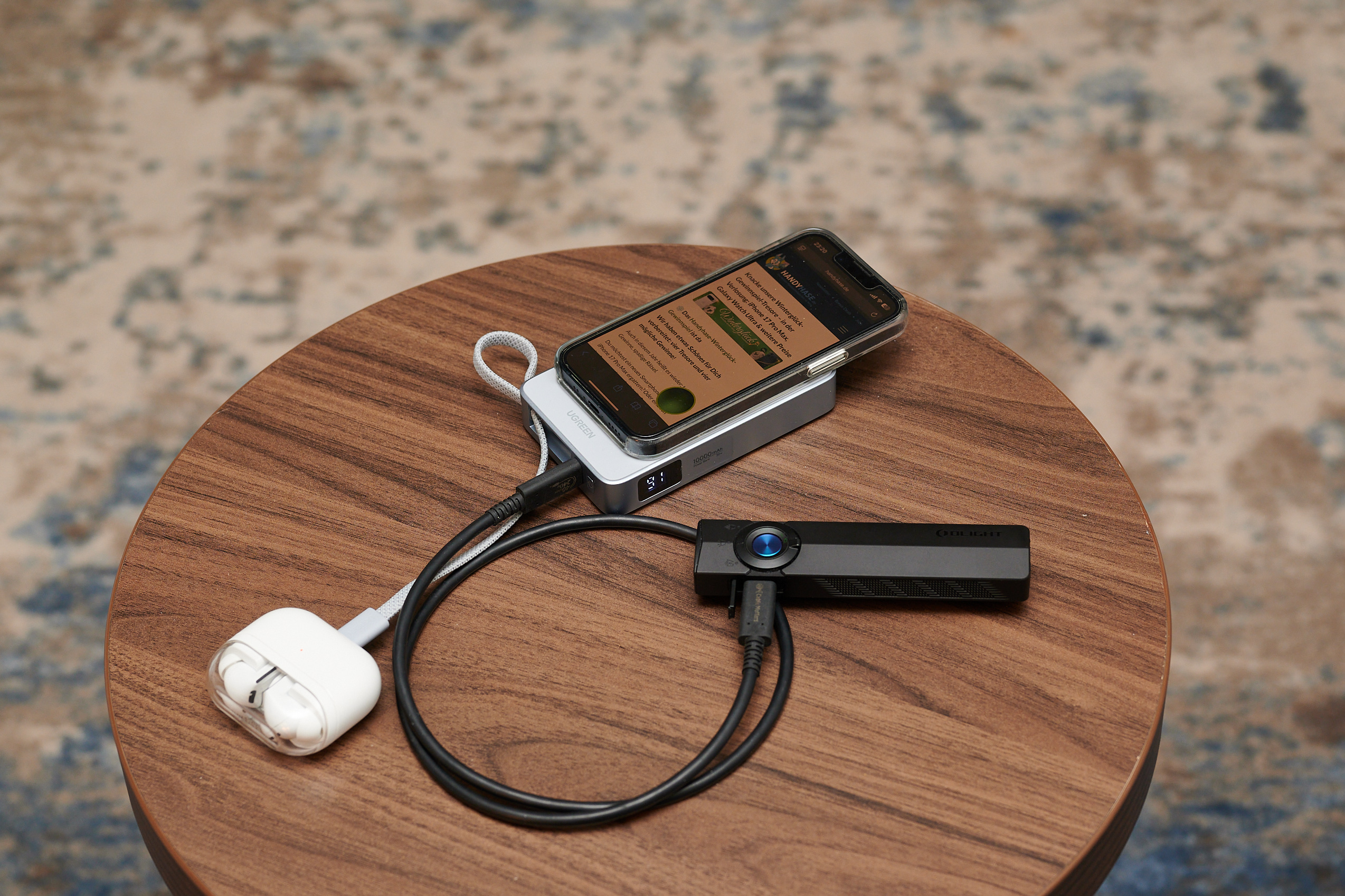 Ugreens Qi2-Powerbank hat ein integriertes USB-C-Kabel und einen USB-C-Power, kann also drei Geräte laden. (Foto: Andreas Sebayang / Handyhase)