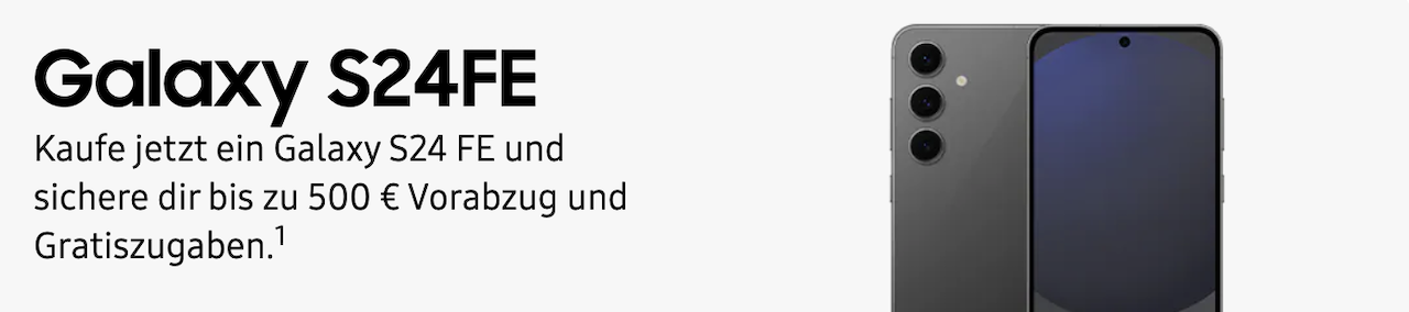 • Sichere Dir beim Kauf eines Samsung Galaxy S24 FE im Zeitraum vom 09. bis 28. Januar 2025 einen Vorabzug von 500 Euro, wenn Du Dein Altgerät eintauschst, sowie einen gratis Travel-Adapter (65 W).